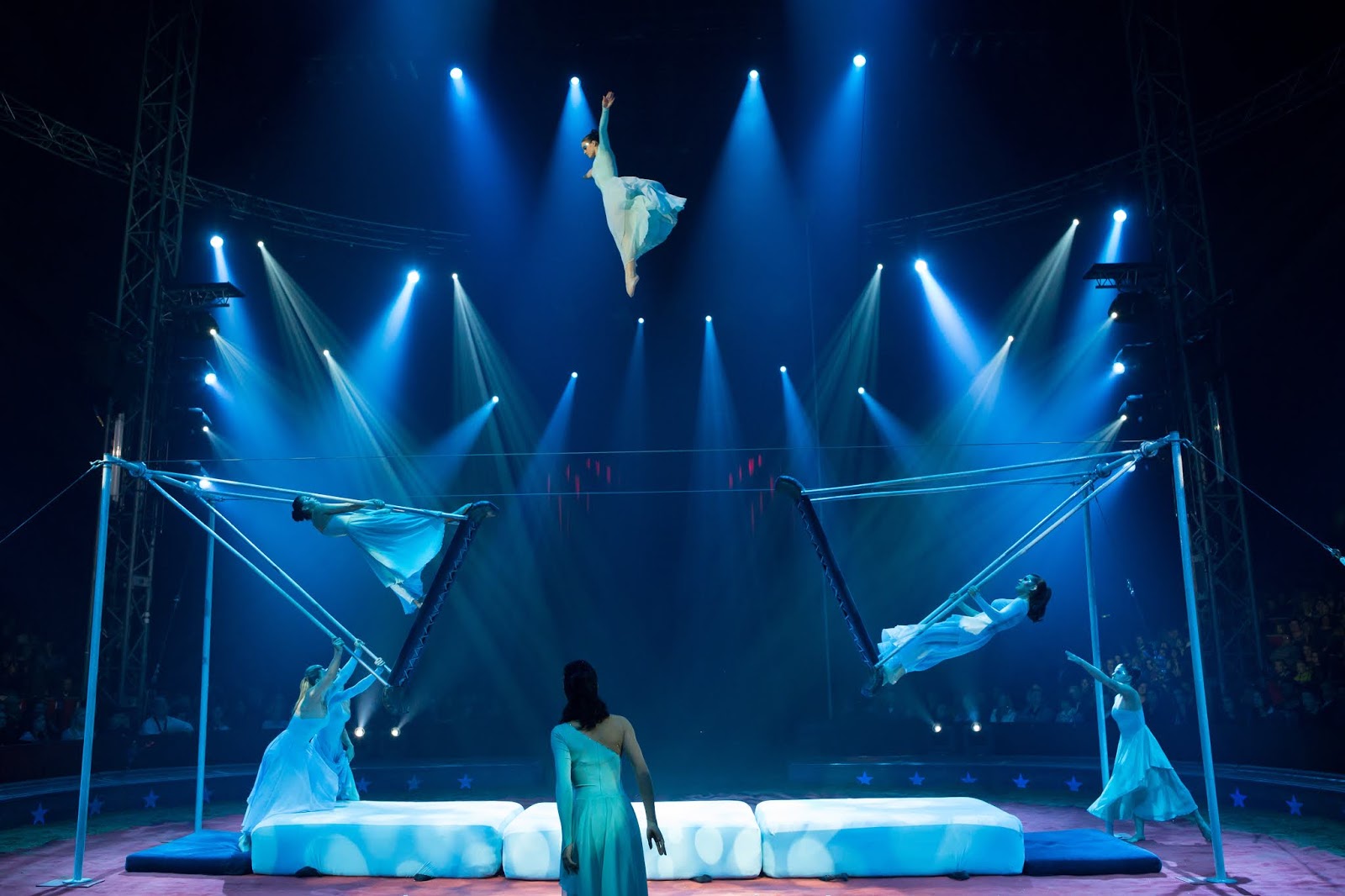 Enfin, une troupe d'acrobates féminines russes, la troupe Shokov, a montré qu'on pouvait faire des sauts périlleux en jupe longue dans un numéro de balancelles très joliment mis en scène. A les regarder, j'ai ressenti ce sentiment de grande étrangeté surnaturelle qui ne me touche que sur certains numéros est qui est la drogue la plus forte que le cirque me procure. Rien que pour les numéros sus-nommés, cela vaut le coup d'aller voir le spectacle.