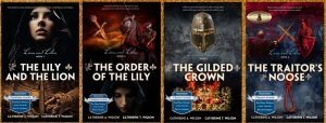 Cathy A and Cathy T WilsonDouble delight this month! I have the pleasure of interviewing a writing duo with a spark of serendipity between them given they both share the same first and second name as well as a passion for medieval historical fiction. Catherine A Wilson and Catherine T Wilson are the authors of the Lions and Lilies series. You might like to watch this Youtube video where the Catherines explain how they met and began their joint writing journey. Both were born in England but made their way Downunder. Each book in the series has received a first place in their category  in the Chanticleer Book Review Awards with The Traitor’s Noose receiving the coveted  Chaucer Award Grand Prize for historical fiction for 2017. Congratulations!