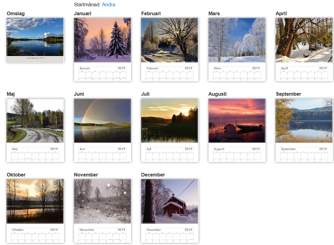 Jag har också påbörjat årets Mockiskalender. Det är en kalender med bilder från Mockträsk som är byn där jag bor. Det här är en skärmdump från kalendersidan där man får en fingervisning om hur kalendern kommer att se ut när den blir klar.
