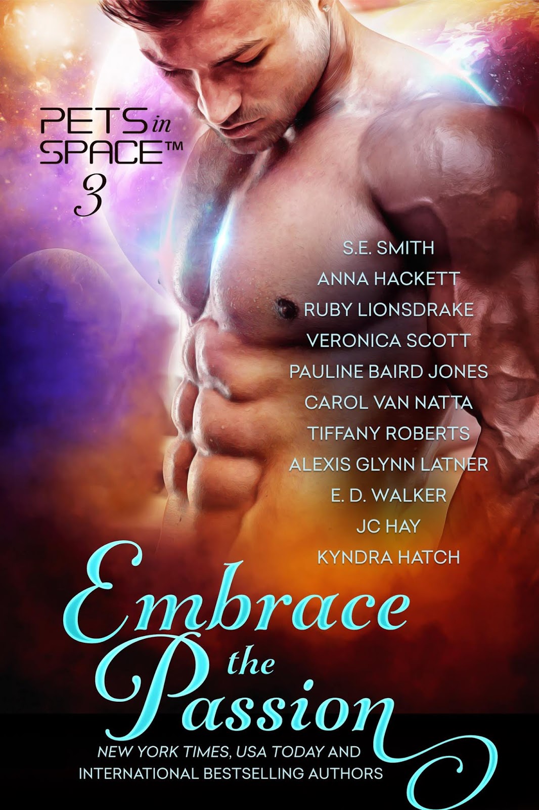 EMBRACE THE PASSION: PETS IN SPACE™ 3Anthology Blurb:Pets in Space™ is back! Join us as we unveil eleven original, never-before-published action-filled romances that will heat your blood and warm your heart! New York Times, USA Today and Award-winning authors S.E. Smith, Anna Hackett, Ruby Lionsdrake, Veronica Scott, Pauline Baird Jones, Carol Van Natta, Tiffany Roberts, Alexis Glynn Latner, E D Walker, JC Hay, and Kyndra Hatch combine their love for Science Fiction Romance and pets to bring...