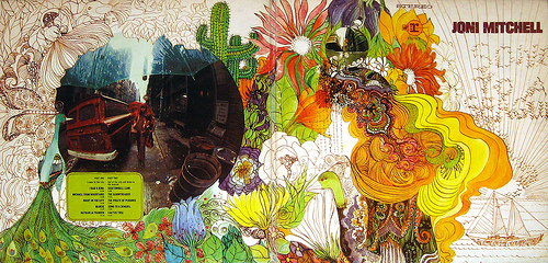 The first side of the LP is the "city" side: life in the city, love in the city, dark secrets in the city. The lyrical picture painted isn't one of total despair, in fact, it's multi-sided, but it's definitely bleaker than whatever ensues. The minimalism of the LP’s first side is gorgeous in retrospect, bold in its simplicity, and deceiving. "Night In The City" is the only fully-produced tracks on the album, where Joni is joined by Steve Stills on bass and layers her vocals across the top like a rich sauce. The most fascinating part, though, is the overdub of her own vocal harmonies - the chirping "Night in the CIIITY, night in the CIIITY, looks PRETTY to me" is mesmerizing. Side two is a blend of imagery and sea shanties with sailing ships, pirates, seagulls, and oceanic longing. "The Pirate Of Penance" and "Song To A Seagull" are really striking; the former a fully-written drama unto itself, once again showcasing Joni's miraculous "duetting with herself", and the latter boasting a certain "majesty of olde" as the lyrics suggest: "My dreams with the seagulls fly, out of reach, out of cry." "Cactus Tree" is for many the LP's star, building on Dylanish lyrics that micic "A Hard Rain". Crosby’s first impressions of Joni aren't lost on the listener.