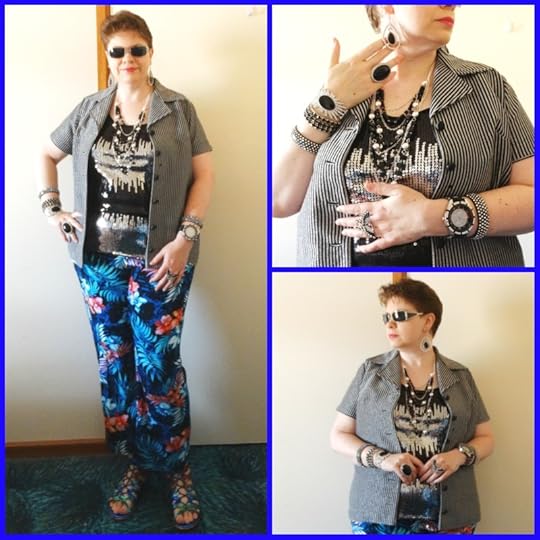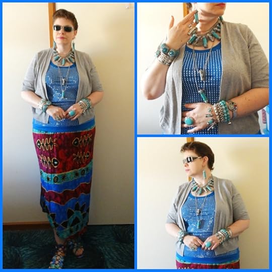 JEWELLERY: Jewel Divas Moroccan Skies set with ebay bangles and ring (right arm) and chain store ring (left hand)