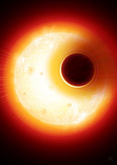 Image: Artist’s impression of the exoplanet HAT-P- 11b with its extended helium atmosphere blown away by the star, an orange dwarf star smaller, but more active, than the Sun. Credit: Denis Bajram.