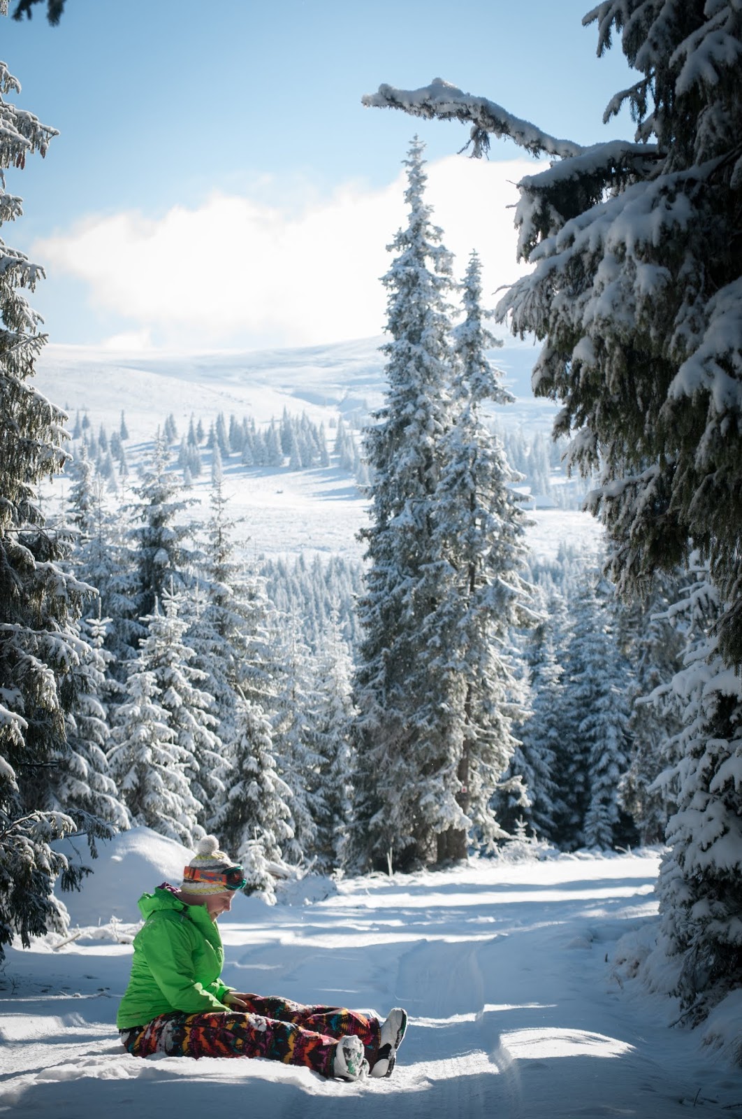 Am condus înspre baza pârtiilor. Era puţină lume în jur: câţiva copii şi părinţii lor. Instalaţiile nu funcţionau; spuneau că nu este suficientă zăpadă. Pe 14 decembrie ştiu că li s-a dat drumul. Însă noi aveam plăcile cu noi, aşa că am urcat cu ele în spate şi ne-am dat. De câteva ori, chiar! Până când, la altitudinea la care eram – destul de capricioasă, vremea ne-a dat de furcă, în curând fiind înconjuraţi de ceaţă.
