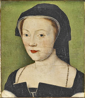 Corneille de Lyon - Portrait of Marie de Guise - 2017.88 - Indianapolis Museum of ArtJames V of Scotland followed the Royal Scots tradition of marrying French brides when he persuaded Francis I to part with his sickly daughter Princess Madeleine. Unhappily she did not thrive in the Scottish climate and died within weeks of her arrival. Reluctant to part with a second daughter, Francis I offered James sound financial inducements to accept the recently widowed Marie de Guise as his second bride. The de Guise family had only recently been elevated to the dukedom, but on the plus side Marie had proved her ability to produce sons. A cultured, intelligent woman familiar with the French Court, she was well able to fulfil the role of Queen of Scotland as intercessor, peacemaker, and mediator as well as ornament of the court and a shining model of piety. How much she missed her eldest son, who remained in France with his grandmother, is not recorded.Her life in Scotland began in 1538 when she was 23. By 1542 she had given James two sons and by the middle of the year was expecting a third child. However, tragedy struck when the Scottish princes died with days of each other. Both parents were distraught. In November, Marie’s fifth child was born only days after the disastrous battle at Solway Moss in which the Scots were roundly defeated by the English. In Falkland Palace, James V reputedly turned his face to the wall in despair. Aged 30, he died on the 14th December, leaving the nation in sad disarray and his no doubt distraught wife alone with their new child at Linlithgow. His only surviving legitimate child, Mary, became Queen on his death.Recovering from childbirth while in mourning for her husband, Marie, as a foreigner in a war-ravaged land, might have felt insecure enough to retreat, with her precious child, behind the walls of the strongest castle in Scotland. The times were dangerous, and not everyone was helpful. The child’s closest relative, the Earl of Arran, wanted her to marry his son. Henry Tudor wanted her to marry the English Prince Edward and Francis I was determined that should not happen. Marie de Guise, as Dowager Queen of Scotland, refused to be elbowed aside; she gathered loyal supporters of the crown around her and very soon the Great Seal had been amended and documents were issued in Mary’s name. Mary Stewart’s coronation was held on 9th September the following year.Living in Scotland for less than five years, Marie de Guise had an admirable grasp of Scottish politics and managed to safeguard herself and her daughter. Slowly and surely she built up French support and in 1547 she deemed it wise to send Mary to France where she married the heir to the French throne Standing firm and alone, visiting her daughter only once, Marie de Guise continued to rule as Regent in Scotland. Over time Scots feeling grew against the French; they disliked being thought a subsidiary of France and deposed Marie in 1559; her death in June 1560 was followed by the death of her son-in-law, Francis II of France and by December, Mary was no longer Queen of France. Mary returned to Scottish shores in August 1561.