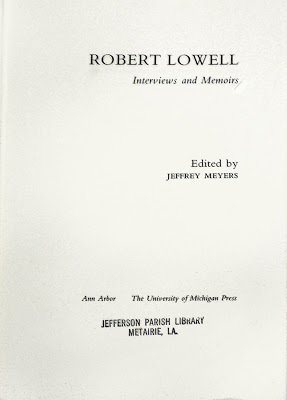 In short, then, I'd like to like Jamison's book, but I just can't. Nor can I really conscientiously recommend it as a valuable contribution to Lowell studies. For the moment, I'd say that those of you still curious about the poet would be far better off reading the fine, comprehensive editions of his poetry, prose and letters which continue to appear forty years after his death.