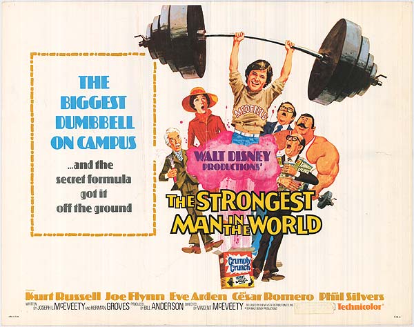 Before “Star Wars” took over my life in 1977 (you might think I’m exaggerating, but I assure you, I am not), this was one of my all-time favorite movies, right up there with “The Bad News Bears” (still surprisingly great) and “Bugsy Malone” (still astonishingly weird). Watching it now, after more than 30 years, a few things strike me: One, it’s no wonder Kurt Russell became a star. Even in this (let’s be honest) extremely mediocre movie, he stands out thanks to his genuine charisma. Two, even in what was obviously a pretty low-budget effort, Disney was able to corral a murderer’s row of character actors to fill out the cast: Joe Flynn, Cesar Romero, Dick Van Patten, Eve Arden, Kathleen Freeman, Phil Silvers, William Schallert, Dick Bakalyan, Gordon Jump, Harold Gould, Ronnie Schell, James Gregory, Bert Mustin and the great Art Metrano. Three, I once considered this the epitome of fast-paced, action-packed comedy. I was wrong. It's slow, it's obvious, and there's surprisingly little action (except for some goofy fight scenes and Joe Flynn in long underwear wrecking a boardroom table.) I have to admit, though, it’s still pretty entertaining on a purely nostalgic and “what the hell?” level.