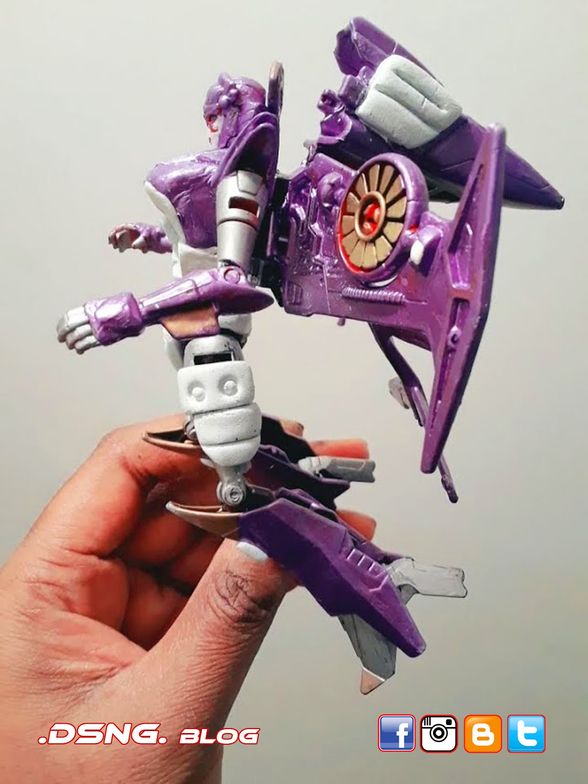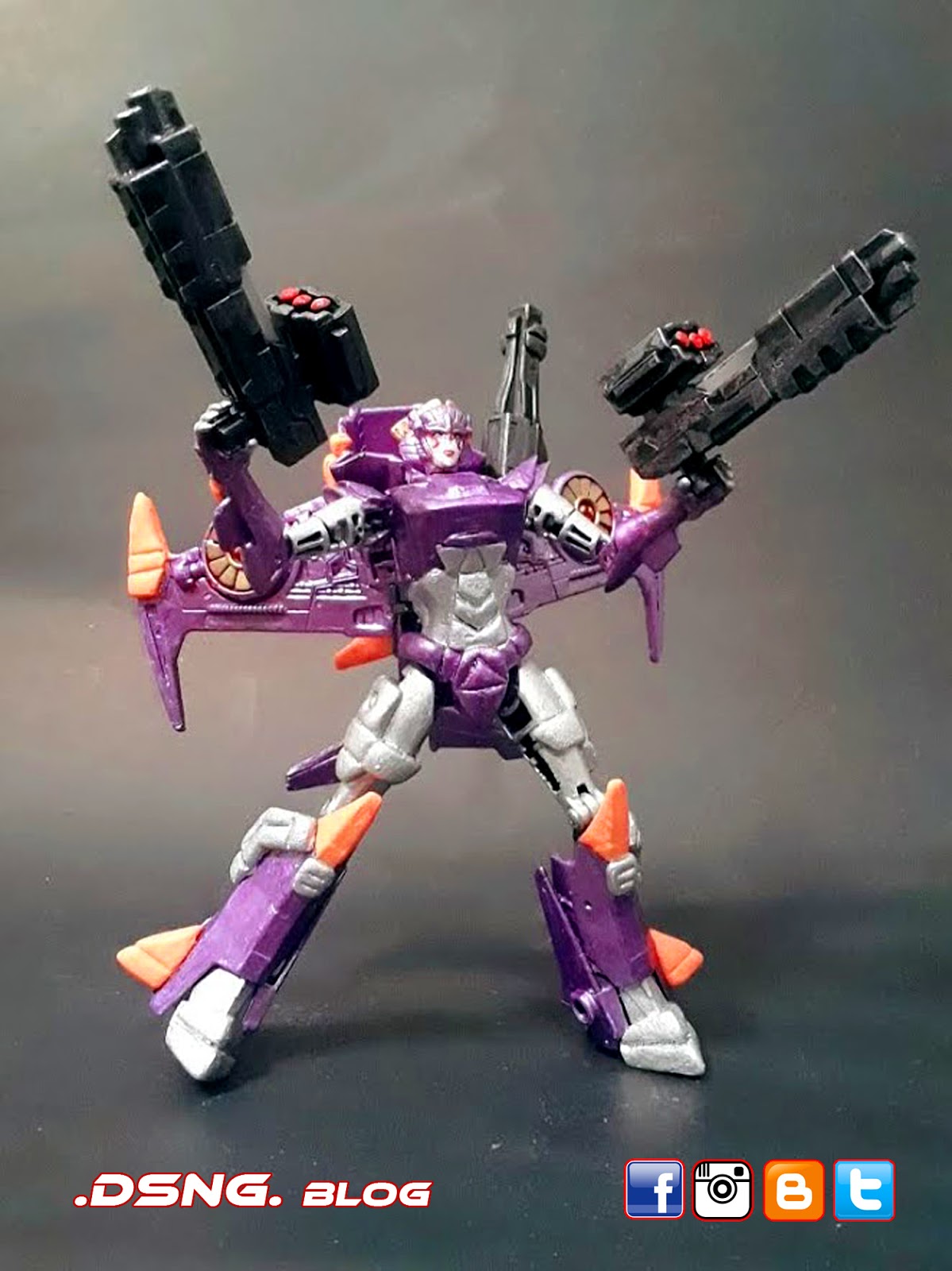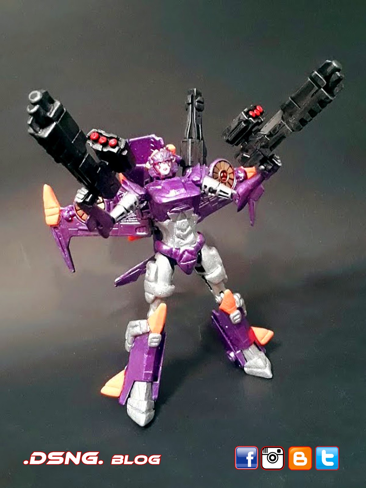 Her midsection and crotch piece were resculpted with putty, as were the additions to her thighs and her legs. Her heavy handguns came from an IronFactory third-party TF toy, while the Cannon attached to her back with a magnet came from a Gundam toy. She doesn't transform, since I enhanced her torso and made her taller. But I don't mind that fact, since she is displayed as a robot.
