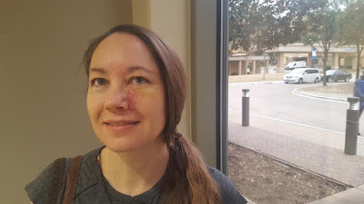 *AN ASIDE: I like to think of the way my wound healed as being similar to the healing we go through after leaving an abusive situation. At first, it looks kind of worse. Though we have taken the first steps toward healing it is a precarious time. My wound needed special care, it needed protection and careful cleaning. It is similar when we have broken free from a harmful relationship. We are messy, vulnerable, confused, and in danger of allowing ourselves to be infected with poisonous beliefs, potentially prolonging our healing or hurting ourselves further so that we need yet MORE help and interventions. However, if we do the work and take care in the beginning, the healing soon becomes visible and - dare I say it? - almost easy. Until it IS easy! It's worth it, my friends. Cutting the cancer literally off of your skin or cutting it figuratively out of your life. It's worth it. (Now, does anyone want to give me $600 so I can pay for my surgery? It's worth it, I just don't have it. Oh, wait. That's still part of my healing, eh? Well, the request still stands. Sometimes it's okay to ask for a little help in the healing process. Giggle! xoxo)