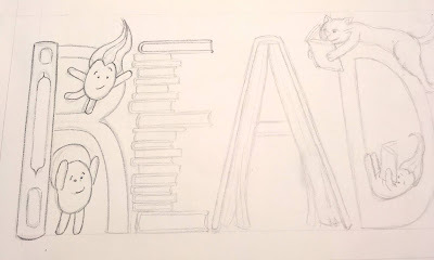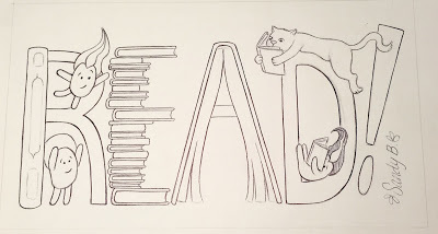 To clarify, here's another example: Let's say you are a librarian and want artwork to hang in your elementary school library... you could ask for the word "READ!" with some Lilah Beans. I would create the R-E-A-D letters made from books and stacks of books with Lilah Beans sitting on the stacks and reading other books. You could also tell me if there are particular titles you'd like on some of the books. Hmmm.... that sounds pretty cool - I may have to draw that one for myself!