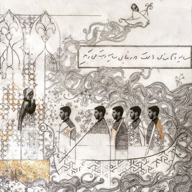 A collaborative project with English painter Charlie Calder-Potts to illustrate this timeless narrative and its themes. She has taken people from the ‘here and now’ on the streets of Iran and placed them within the context of Persian Poems of Rosa Jamali.