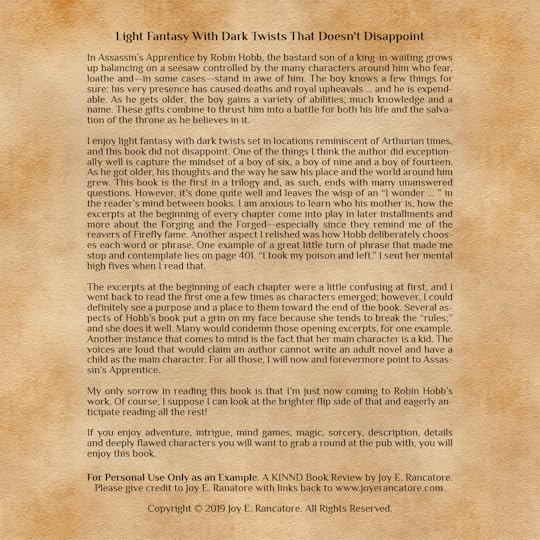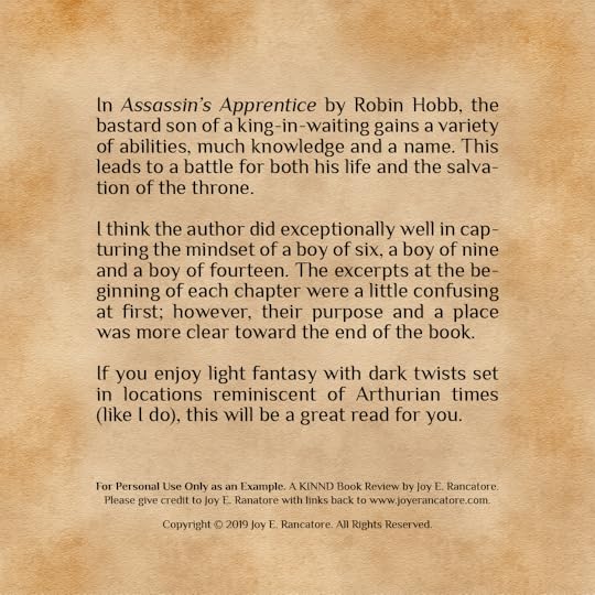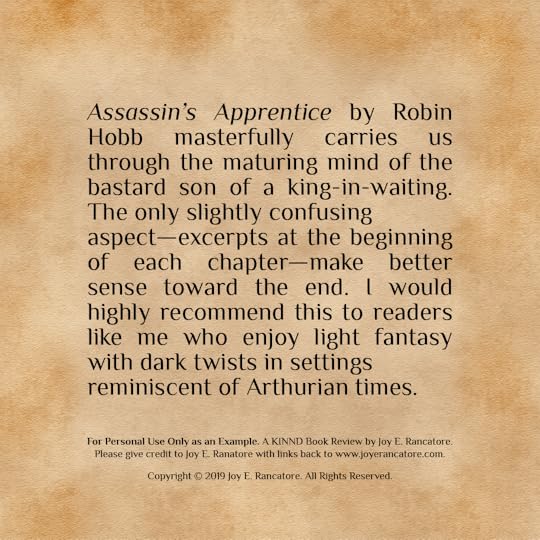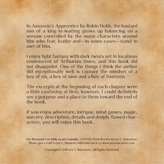 Below, I’m sharing four versions of a KINND book review for Robin Hobb’s The Farseer: Assassin’s Apprentice. I decided to write multiple to show you that you don’t have to be wordy to write a helpful and KINND book review!