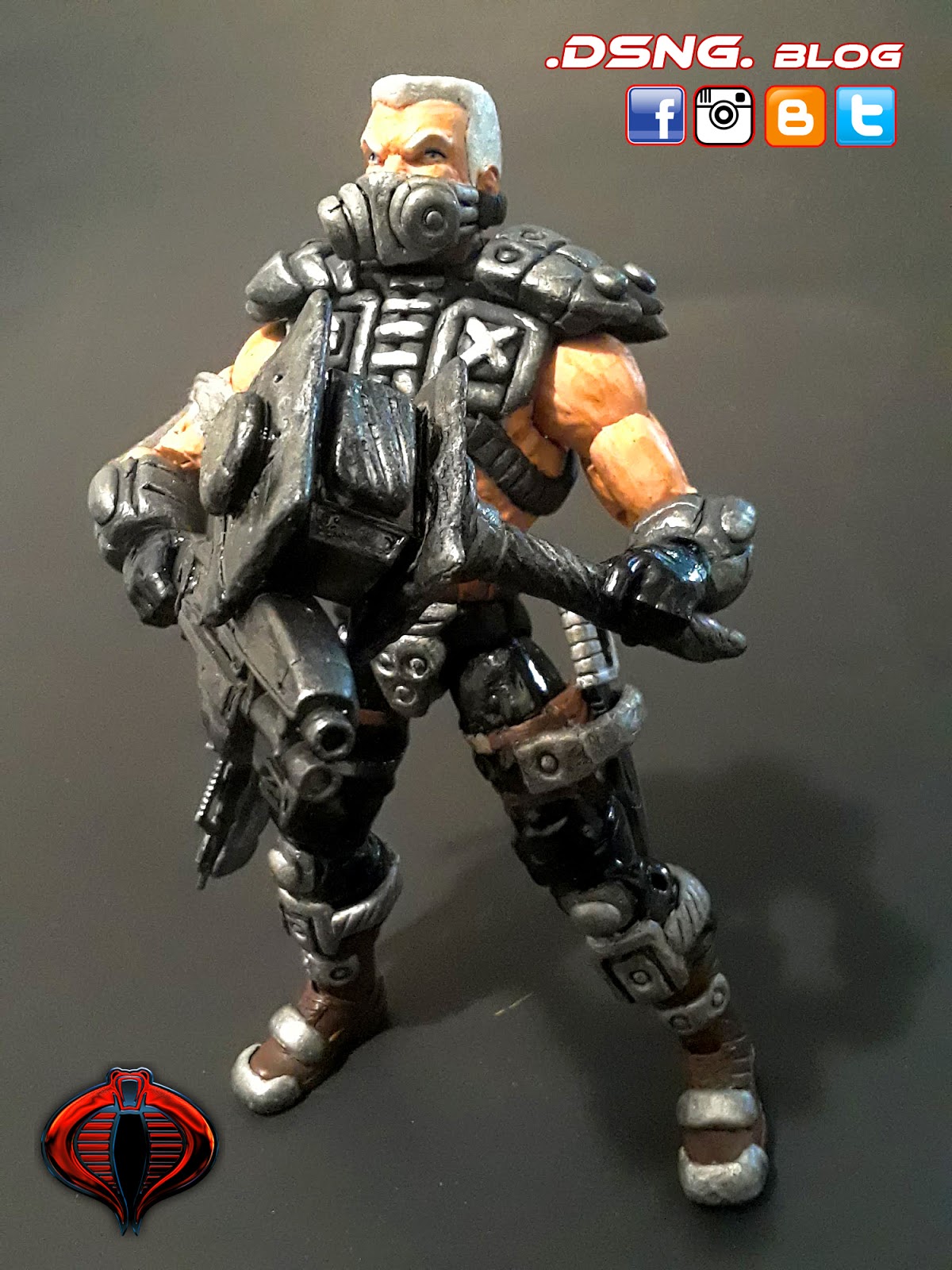 This tough guy took a long time.... Finally done with Road Pig from the Dreadnoks Cobra biker gang in G.I.JOE! Base body was Marvel Legends Nuke. Sculpted his entire body armor and boots. Weapons were from ebay and were modified. The dagger came with the toy. Hammer was modified from Thor. Sculpted his face mask and colored hi with Tamiya paints. The very last pic shows his arm tattoo, just like in the 80s cartoons. He has 4 guns and 1 dagger [one of his guns was not shown]. The sculpting phase was shown over HERE. Enjoy and Share!
