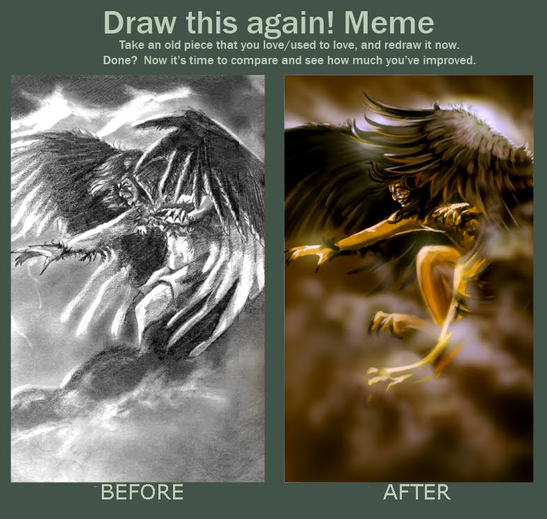 Some artists were doing this "Then and Now" pieces at deviantart.com, so I thought I'd take one of mine and do the same thing. Kind of interesting how I work on stuff now, huh?