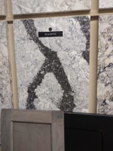 After checking out the TN apartment, and grabbing a quick bite to eat, we went to the kitchen cabinet vendor to confirm our cabinet choices made over email, and to pick out countertops. DH surprised me when he actually made a suggestion on the latter, and it was a bold, dramatic pattern I would have never expected from him. This countertop will be on the island, which will have black cabinets. The rest of the kitchen will have the grey stained cabinets, with black galaxy granite. We have the latter in our house now and love it (the copper fleck is great for hiding crumbs!).