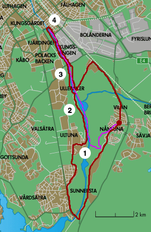 Årets första längre cykeltur gick längs Fyrisån, medurs längs den röda linjen, utgående från pricken i Nåntuna där jag bor. Syftet med resan, förutom att komma ut i solen och få lite motion, var att rekognoscera för romanen. I de första kapitlen rör sig några av huvudpersonerna enligt den violetta linjen in till Uppsala med den romerska ubåten Rhea Svea uppför ån. En av protagonisterna råkar bo helt nära mig, i ett hus han ärvt av sin moster.