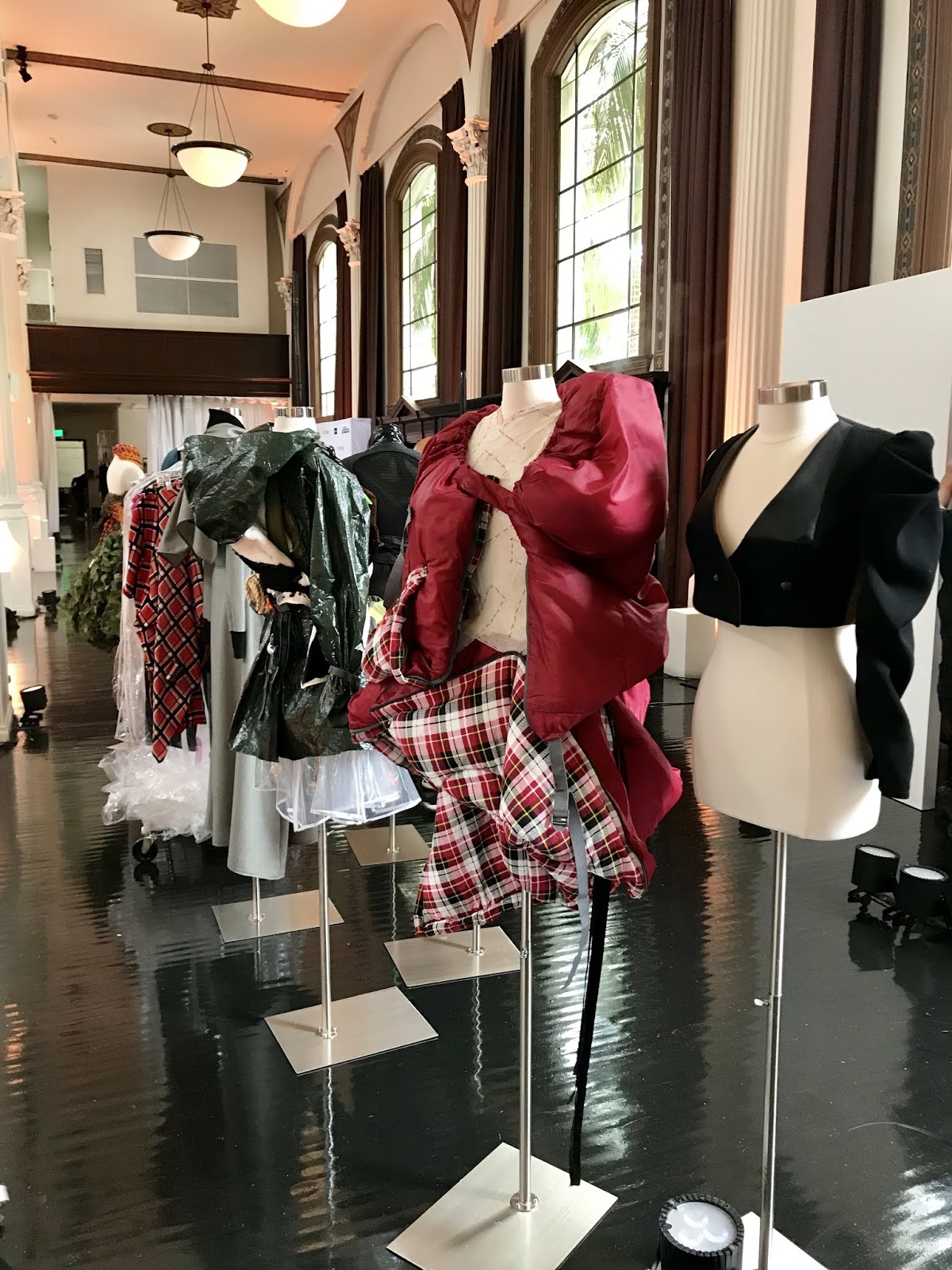 David and I gathered looks from this season's Challenges (ones that have aired), had them delivered,...then we got dress forms, and steam the looks and brought them to Vibiana's and...it was "Done & Done".