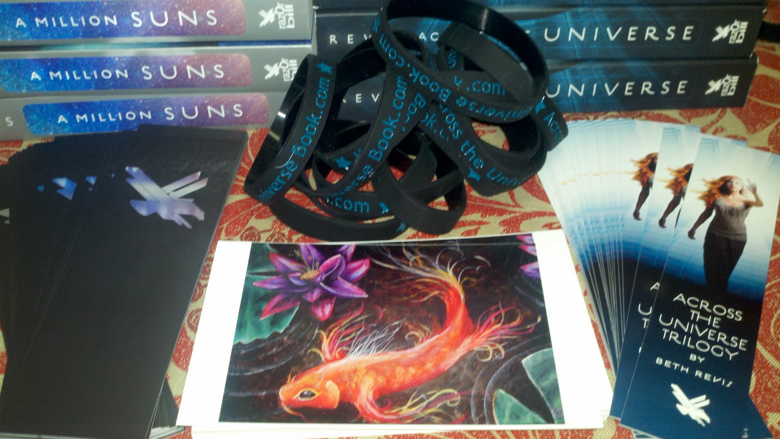 THIRTY WINNERS WILL GET:30 people will win either a signed ARCs of A MILLION SUNS or a signed paperbacks of ACROSS THE UNIVERSE, plus a limited edition koi print, and swag.