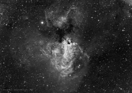 The Swan Nebula (M17) in Hydrogen-alpha (16 x 5 minute exposures with the WilliamOptics ZS61 and Atik414EX mono CCD camera). Reprocessing a set of frames I shot almost a year ago. https://SaltwaterWitch.com