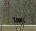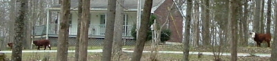 Oh, and by the way, I heard some lowing. (Sing it with me: "The poor baby wakes") Okay, that'll do. ANYWAY, I looked out the front door and saw these visitors in front of my mother's house. Charlie says they knocked things over in the garden and cut up the turf with their hooves. Cruddy no-good jd's with their leather jackets.