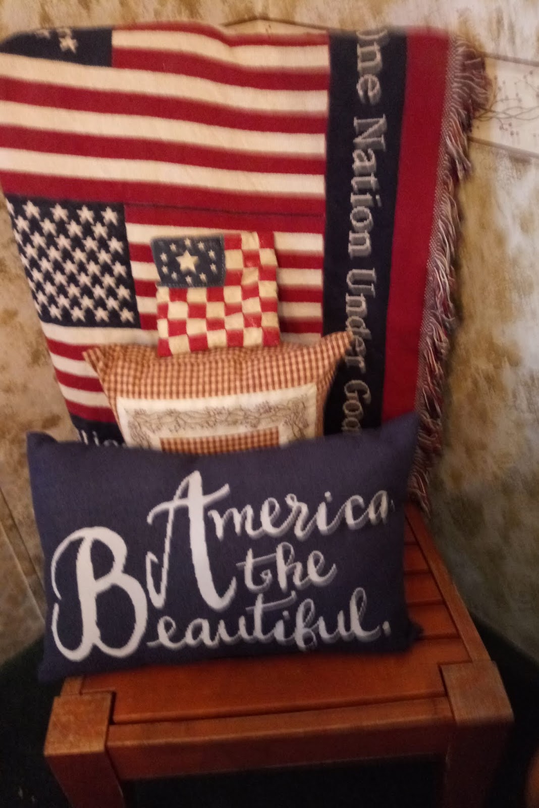 As time passed my husband came across this old solid redwood chair at a bargain. I planned on placing it out on the front porch.