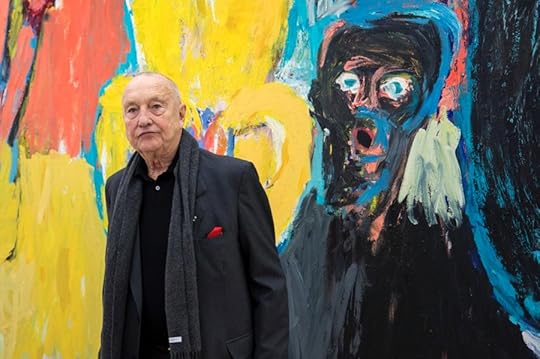 Георг Базелитц на фоне собственной работы "Хор на мосту" 1983 года. Источник [5]