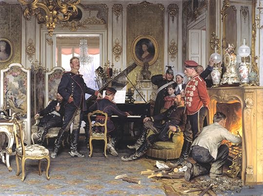 Антон фон Вернер, "Солдатская квартира на подступах к Парижу 24 октября 1870года", холст, масло по эскизу 1870 в 1894 году.