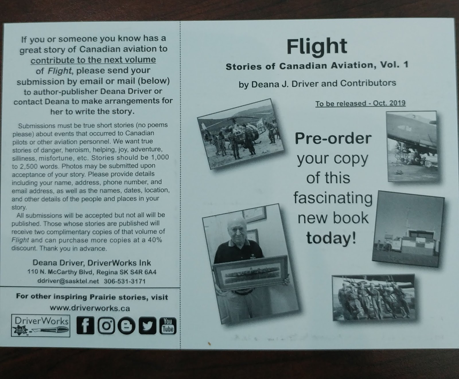 We talked about what we do to keep ourselves busy and I mentioned my work as a writer and book publisher. She was curious about my work and took a pre-order card for the Flight book with her.