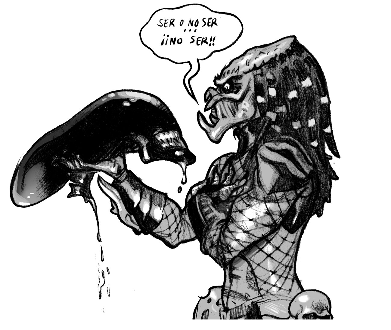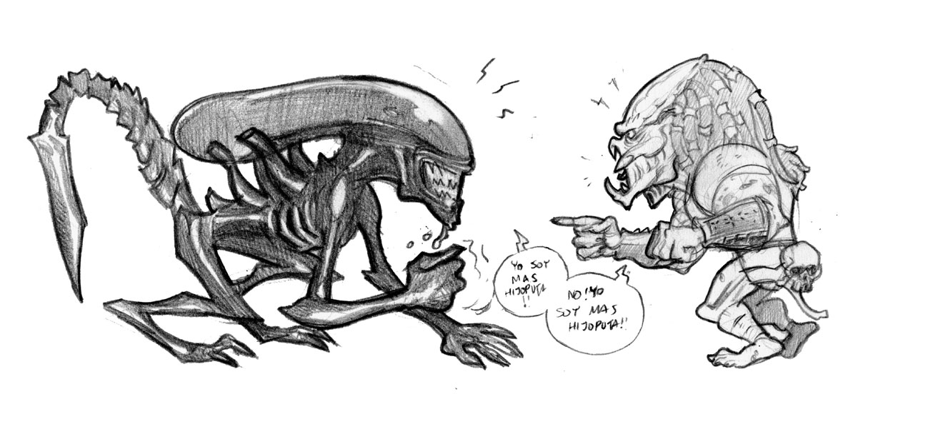 Tres dibujillos que hice en 2006 para acompañar la crítica ( siempre entretenida y acertada )de mi amigo Juanjo ( "El Laja ") para el periódico el Faro , que con la excusa del estreno de turno se aprovechaba para hablar un poco del tema , en este caso era hacer un repaso sobre la relación ya larga del cine y los video juegos y por otro lado hacerlo de dos iconos del cine de terror , suspense y ciencia ficción Alien y Predator .