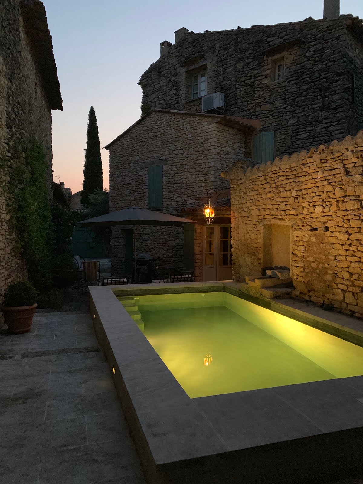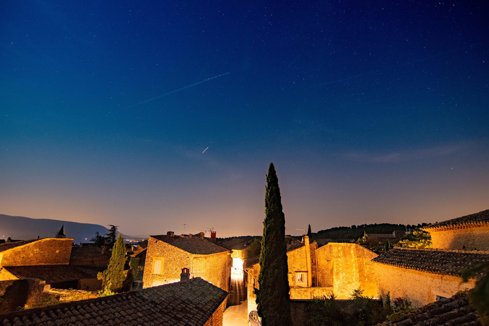 Night falls over the village of Cabrières d'AvignonI spent a long time looking at possibilities for our summer holiday in the South of France, knowing that any one of hundreds of little, extraordinarily beautiful and tempting villages would have made us happy. I was aware, though, that unlike our previous holiday in the area, this time we would be there pretty much in peak tourist season. I did want atmosphere and access but I didn't want interminable queues and contrived quaintness. Cabrières d'Avignon is small with a limited nightlife (one restaurant), a single bakery and small