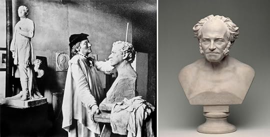 Слева фото Элизабет Ней в её ателье, справа выполненный ею бюст Шопенгауэра.