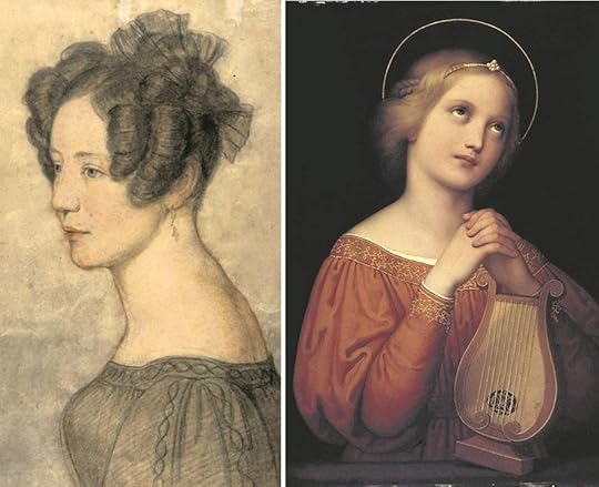 Слева автопортрет Мари в 1820 году, справа работа художницы "Святая Цецилия с лютней" 1833 года