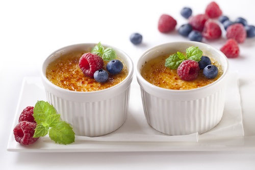 This magical custard is rich and creamy and so good. The sugary top with a light crispy crunch is an added treat. It’s fun and sophisticated. Fresh red strawberries and blueberries with are perfect colors for pre-autumn. Not only does this custard look festive it’s a dessert to love for breakfast, brunch, afternoon tea, or after dinner. Served with iced tea or hot tea it promises to provide new entertaining food memories to treasure and you’ll feel baking strong!-- Cal Orey, M.A. Is an author and journalist. Her books include the Healing Powers Series (Vinegar, Olive Oil, Chocolate, Honey, Coffee, Tea, Superfoods, and Essential Oils) published by Kensington. (The collection has been featured by the Good Cook Book Club.) Her website is http://www.calorey.com.