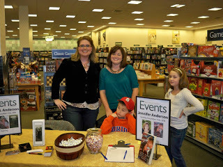 There were 3 authors signing and one of them was a good writer friend of mine from high school, Sarah M. Anderson (no relation). She recently had a Harlequin release for a Man of His Word (she was featured here a while back). The entire signing took about an hour, while I sold out in 30 minutes! Yeah! I know awesome!