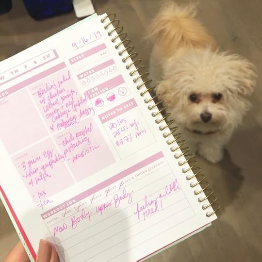 My Fit Journal entry with cute lil Sir looking at me as I blog! Oh BTW, I have a question for fellow dog mommas out there. Lately Sir has been scratching at my legs and barking in a very high pitched manner whenever I am at the computer and not paying attention to him. He only stops when I pet him or scratch his chin. As soon as I stop and look at my phone or the computer for 1 second, he starts scratching me again! When I put him on my lap or on the desk, he stops barking and scratching, but then he gets fidgety and starts typing on my keyboard with his paws! Anyone know how I should address this? I mean obviously he wants attention, but what can I do to keep Sir interested when I have to get some work done? I wish there was a doggy board game he could play or a doggy TV show he could watch! Sometimes I feel so bad that dogs have nothing to do but to wait for us humans to give them attention :( I wish I could pet him all day!!