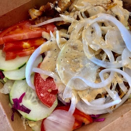 Because of my bloat, I haven’t been wanting to eat any food from home – in case something was contaminated. So I ordered a salad with chicken, lettuce, tomatoes, onions, and pickled cabbage. I was LOVING it until…I bit into the pickled cabbage and realized that it has probably been marinated in sugar vinegar! Oh well. I kept eating it anyway. I’m not entirely sure I was keto yesterday but it was DELICIOUS! Oops! ;P