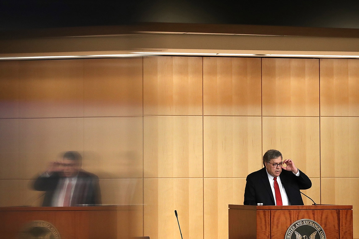1. Why do John Bolton and Barr always touch their glasses like they're adjusting pince nez? It looks like they're receiving secret instructions from outer space.