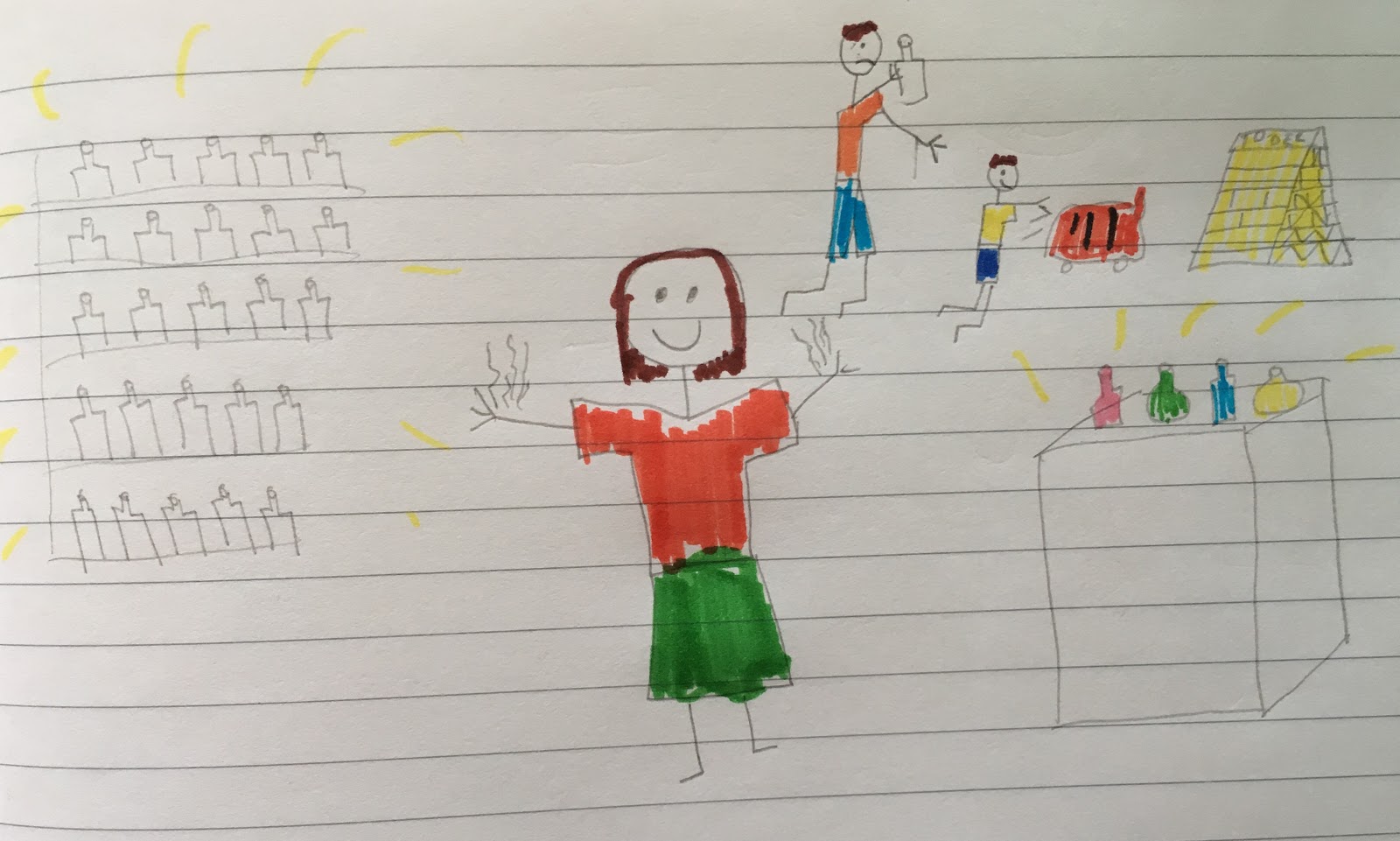 Daddy has grabbed the holiday gin and is trying to stop Peter and Jane from charging a tower of Toblerones with the Trunkis, while Mummy has been distracted by perfume samples and shiny make up.