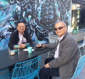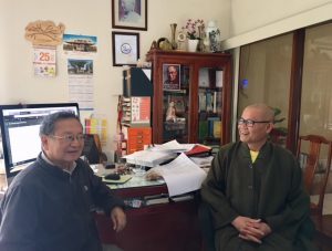Thầy Thiện Tâm, trụ trì chùa Hoa Nghiêm với Đỗ Hồng Ngọc (trái). Melb 10.2019
