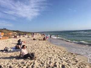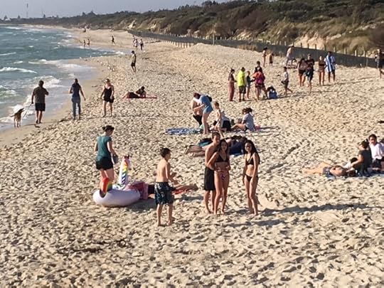 Từ giả chùa Hoa Nghiêm, K nói nếu mình đi thẳng đường này sẽ đến biển. Nghe biển, mình mừng rơn. Ra biển chơi đi mày. OK. Trời hôm nay khá ấm. Thiên hạ dồn về biển, không còn chỗ đậu xe. Chạy vòng vòng. Cuối cùng cũng đến biển. Ôi, còn thua… Lagi, thua Mũi Né, Vũng Tàu… của mình!