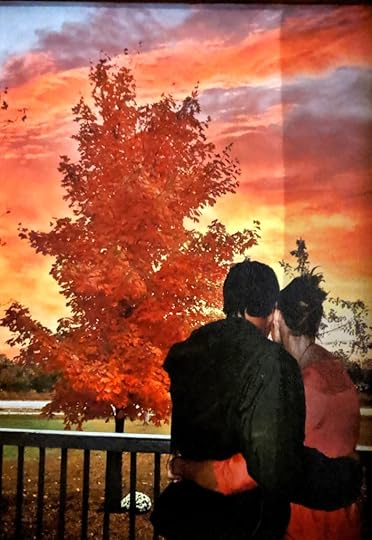 After The Accident and the day of Boston’s service we had an inn full of family and friends. One cousin was there, and we had walked with him and his wife before and during their daughter’s going Home and he had brought a bottle of wine that they had saved to celebrate her life. The four of us sat on the back porch and we drank it together, remembering our children. After they had gone inside, Mike and I stood up and looked behind us. The most majestic sunset I have ever seen graced the skies in front of us. It was phenomenal. Another cousin snapped this picture from my kitchen window when she saw Mike and I embraced and watching together. The tree was bright orange and the sky looked like it was on fire.