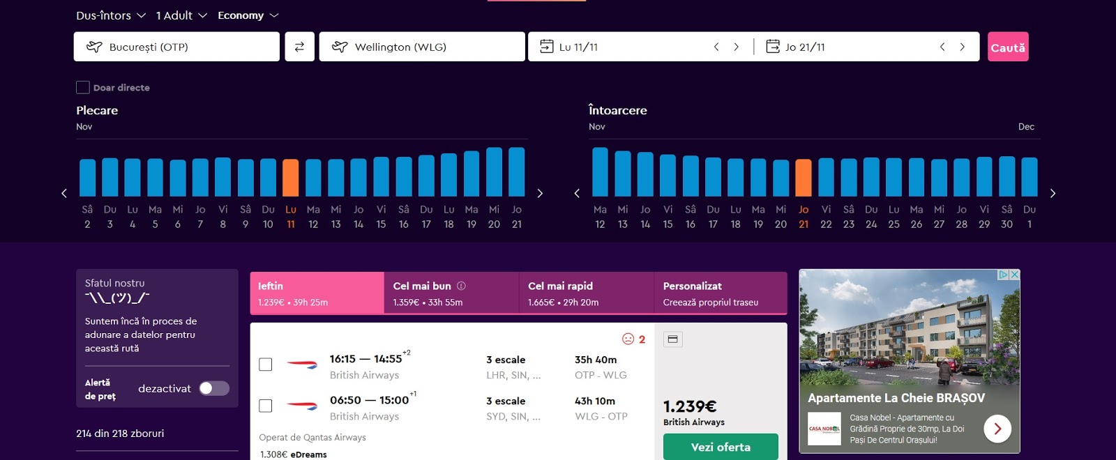 Chiar şi în noiembrie, dacă aveţi 1700 EUR strânşi pentru smartphone-ul ’cela de ultimă oră, primiţi cu sfatul?Wellington e oraşul cel mai mare aflat la cea mai mare distanţă de Otopeni (17,458.94 km) şi de acolo puteţi ajunge în cel mai îndepărtat loc de RO: Waitangi din Insulele Chatham (18,218.58 km). În Noua Zeelandă este primăvară în toată regula, iar un bilet v-ar costa