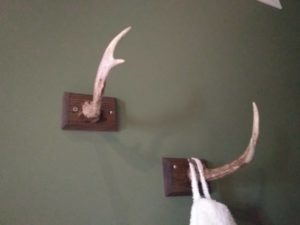 He also made these hooks out of antlers from a deer he got while hunting last year (also, the deer was delicious). He put these up in our bedroom, and they look great.