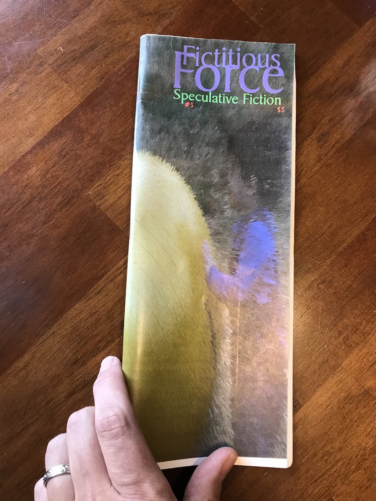 Fictitious Force had a unique shape. I suppose it was simply folded the other direction (hotdog bun style instead of hamburger bun style, as I used to explain to kids), but it definitely makes it stand out in my box of contributor copies. The cover for this issue was even inspired by my story, so that's a cool thing.