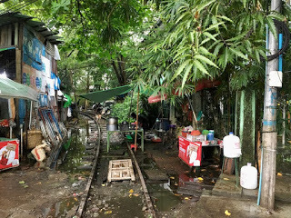 Done in from our first Yangon walkabout, we turn our steps back to the guesthouse. Not far from our digs, we have to cross what looks like an abandoned train line. As I was to learn late in the night, these tracks are not abandoned, despite all the evidence to the contrary. The tracks lead to a locomotive yard on the far side of our street. I was awakened from a dream by the moaning horn of a locomotive picking its slow route along these very tracks. I cannot explain the how of it, only that it happened.