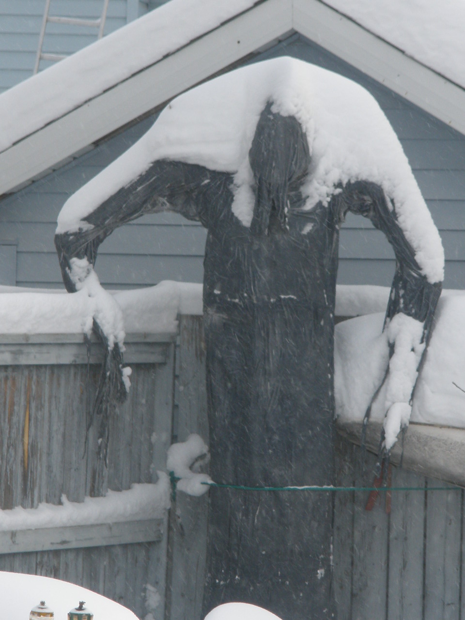 Where it can scare the cookies out of the little 'trick-or-treaters'.And where it usually freezes so solidly to the grass that it must remain through Christmas and into the spring thaw.Sigh.