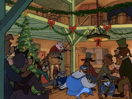 Fezziwig is played by Toad from Disney's adaptation of The Wind in the Willows, which is a lovely piece of casting. Toad's silly, fun-loving nature fits wonderfully with jolly old Fezziwig. He's up on his high desk wearing a powdered wig and in this version he himself is the fiddler.