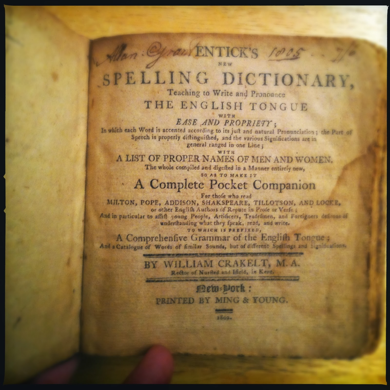 In the end, this is a collectionof books, of objects one holds in ones hands, of things one must manipulate tomake them work. To some degree, these are archival works. Many of them bear themarks of those owners and users who have come before, and often the spellers,grammars and dictionaries from the 1800s include jokes, riddles, and personalnotes, sometimes showing the expressiveness and liveliness of the young womenusing them, such liveliness maybe sometimes being more acceptable within theprivate pages of a book than in real life. Some of the books in the collectionare merely pieces of ephemera, such as little samizdat antidictionaries pastedto bulletin boards. These pieces are interesting in that their content (likethose of the chain letters that came before them) changed over time, being addedto and subtracted from but still remaining essentially the same.