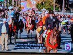Equestrian Units – Each year, the Rose Parade features a wide variety of horse breeds who entertain spectators, each with their own style and grace, including Curly Horses, American Saddlebreds, Gypsy Cobs, Andalusians, Miniature Horses, Draft Horses, and more. Equestrian units offer a variety of special skills and colorful costumes that tie into the Rose Parade theme.