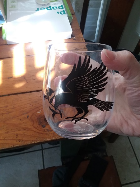 Item #37 - plastic crow glass. Bought at Target one Halloween, used maybe once. I'll wash it for you.